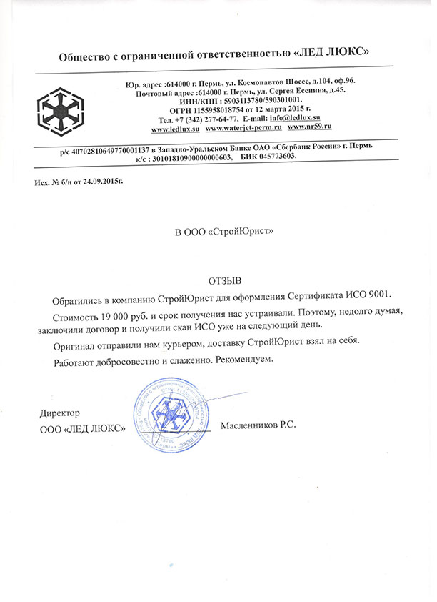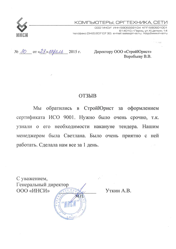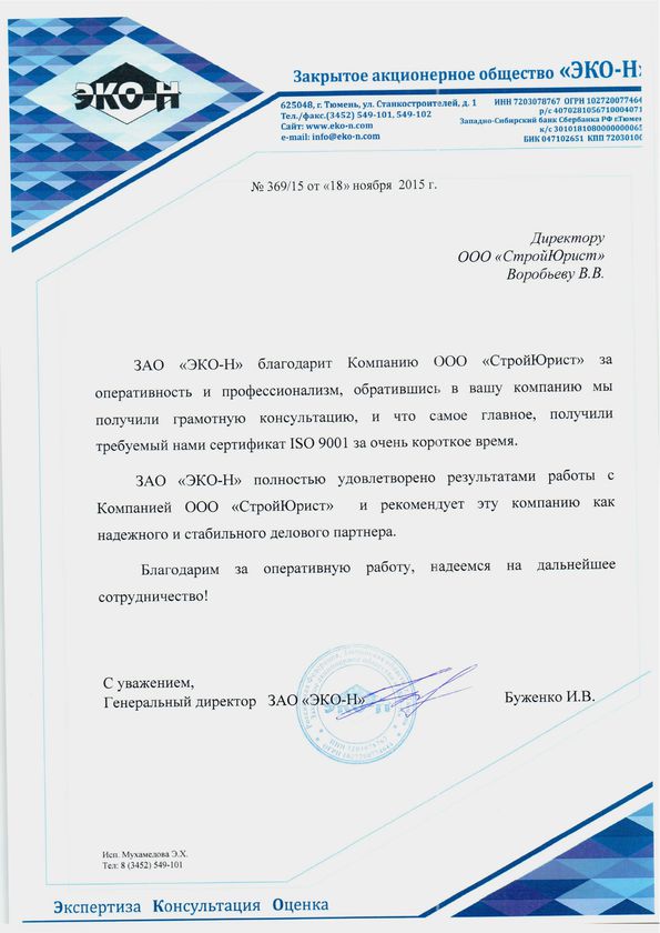 Отзывы клиентов "СтройЮрист" по ISO в Элисте