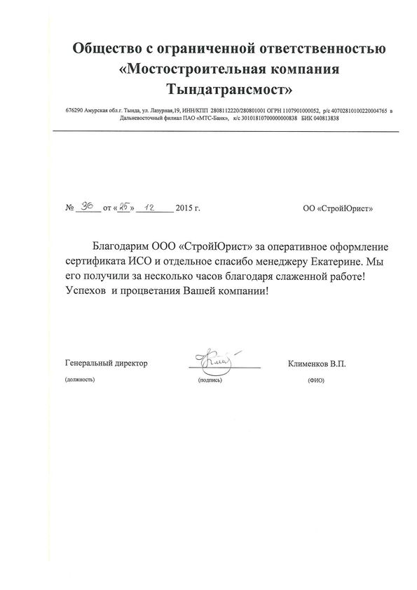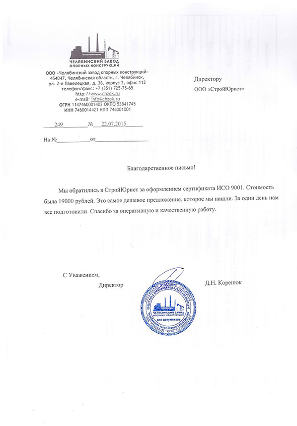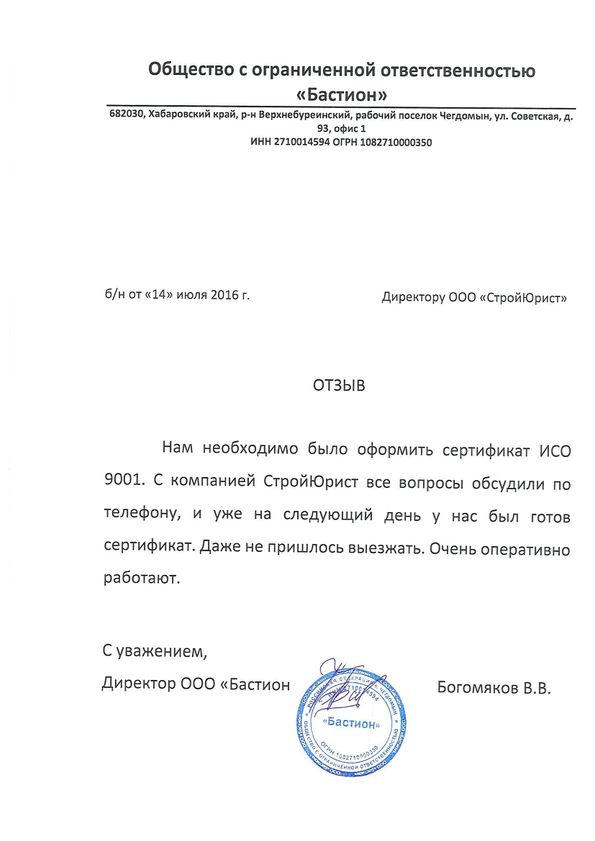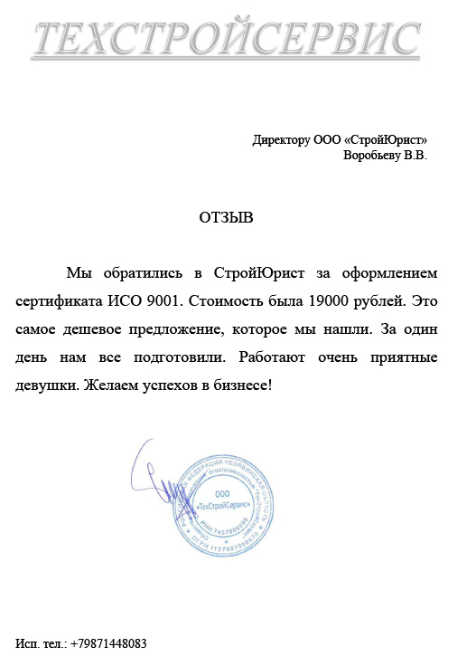 Отзывы клиентов "СтройЮрист" по ISO в Элисте