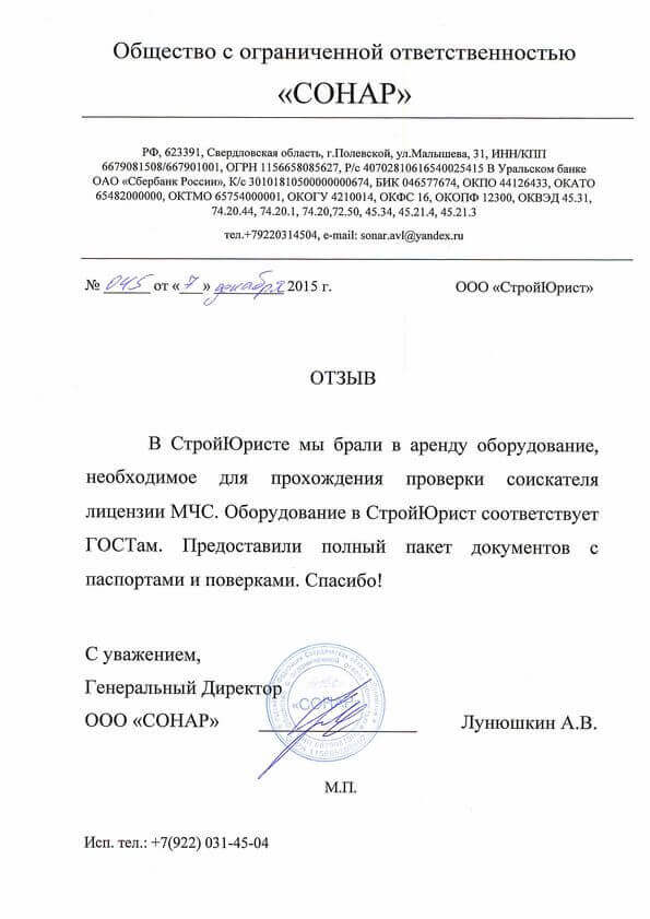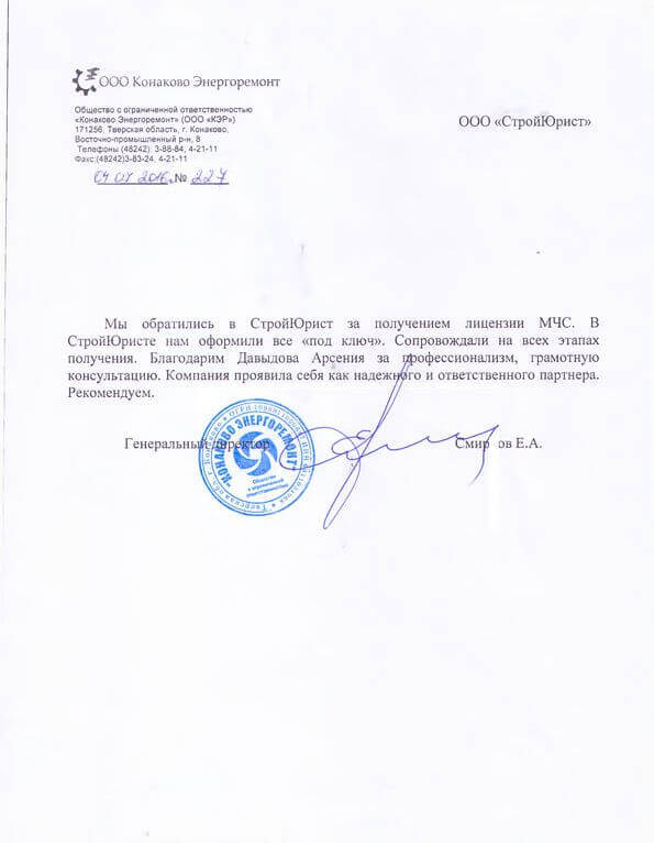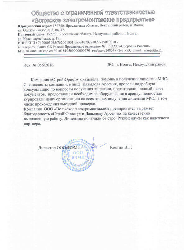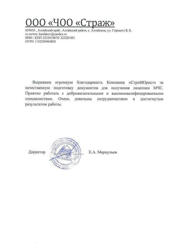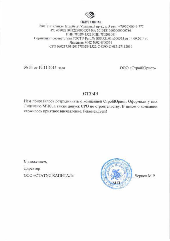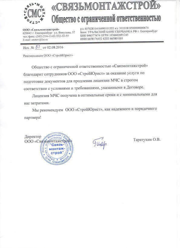 Отзывы клиентов "СтройЮрист" по лицензированию МЧС в Элисте