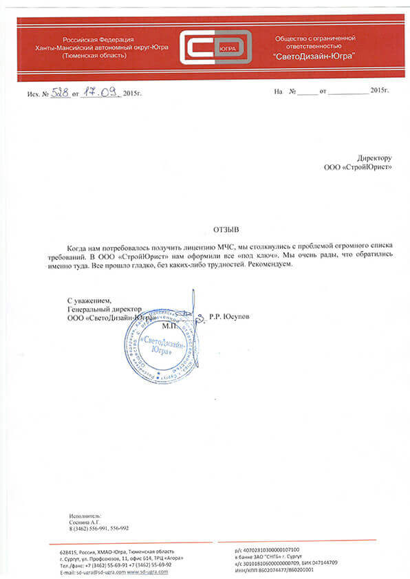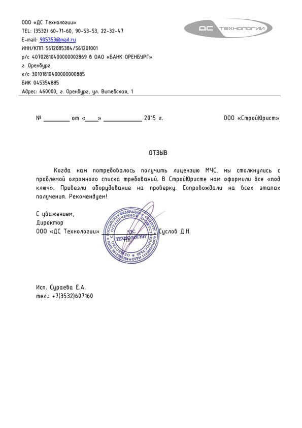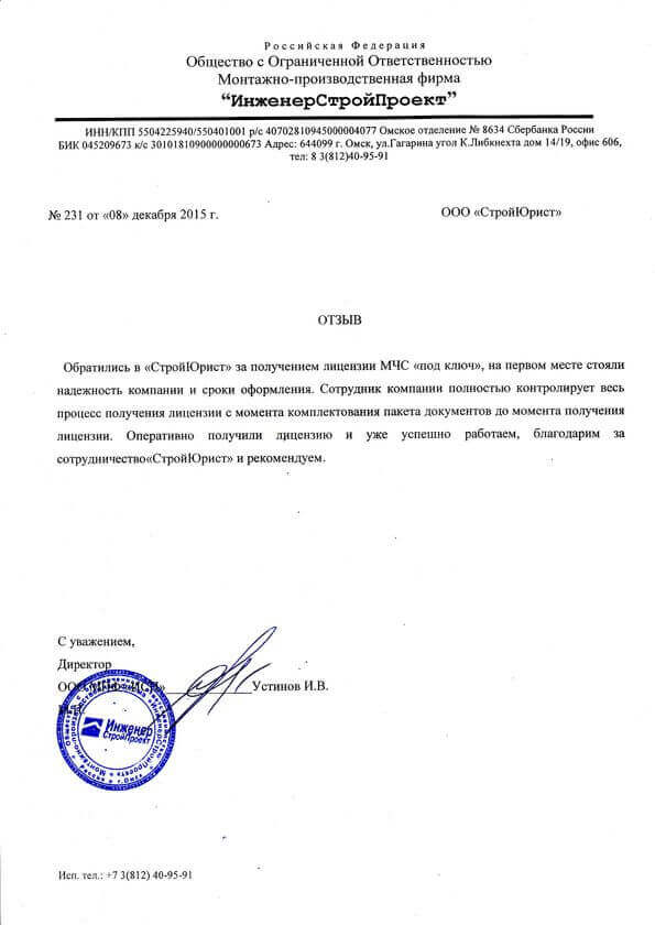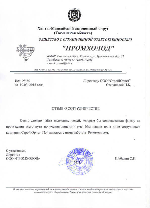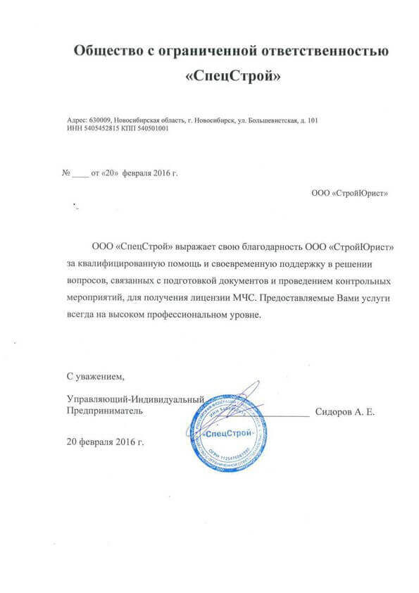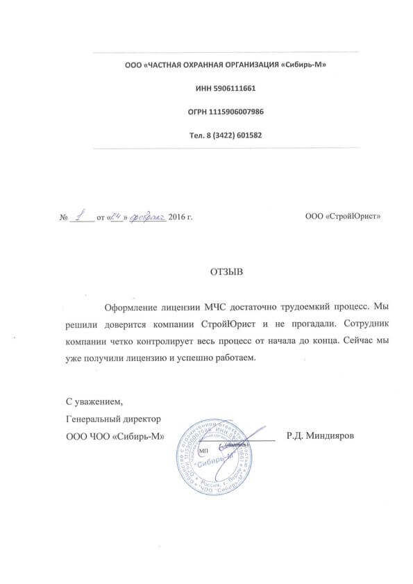 Отзывы клиентов "СтройЮрист" по лицензированию МЧС в Элисте
