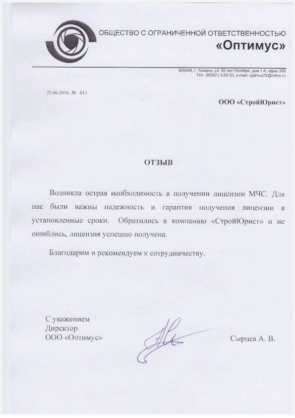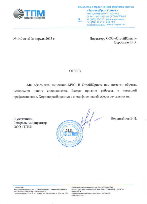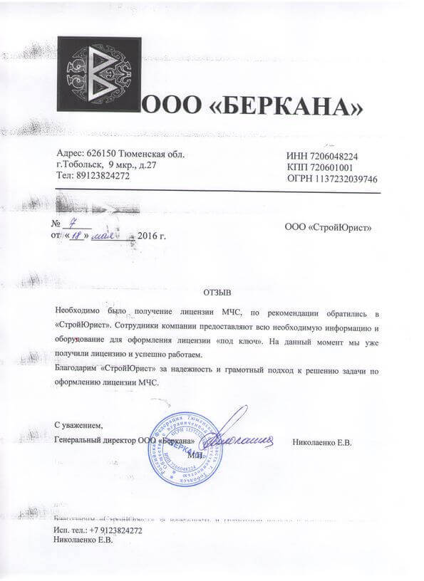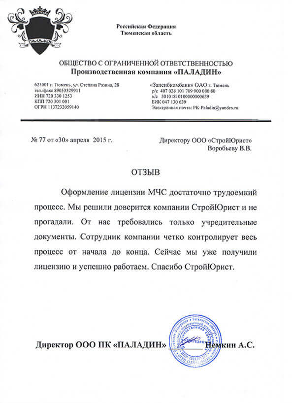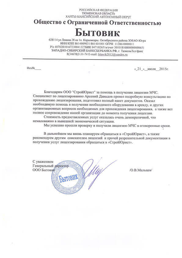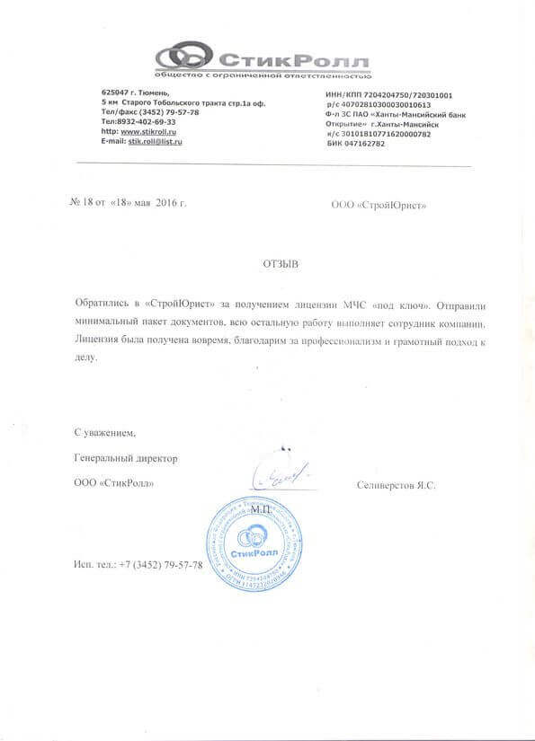 Отзывы клиентов "СтройЮрист" по лицензированию МЧС в Элисте