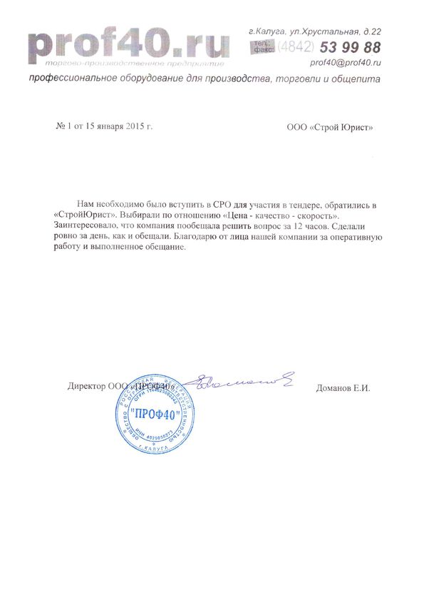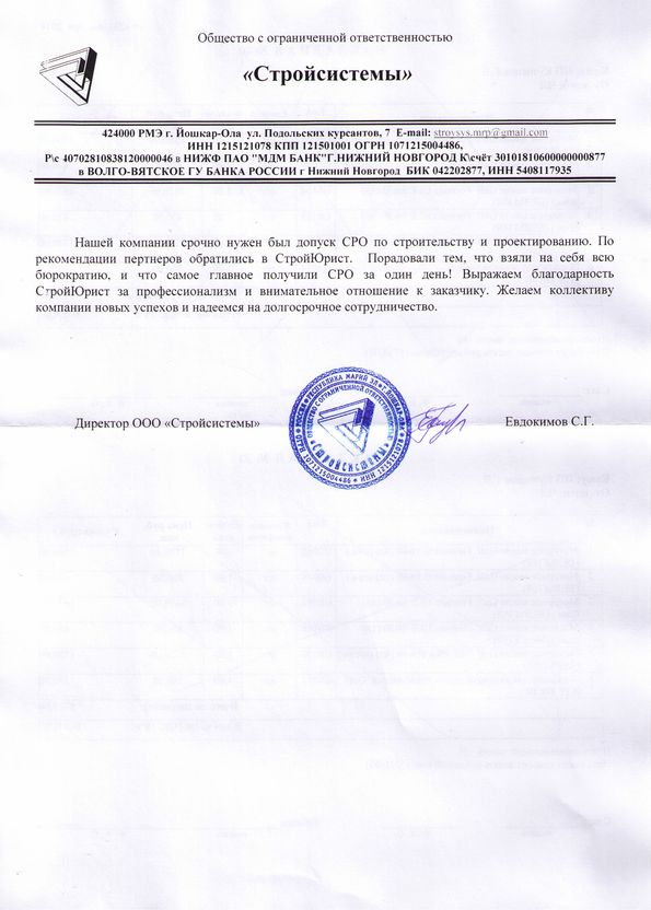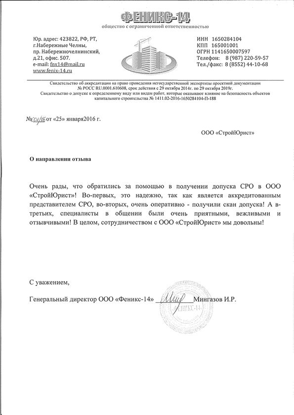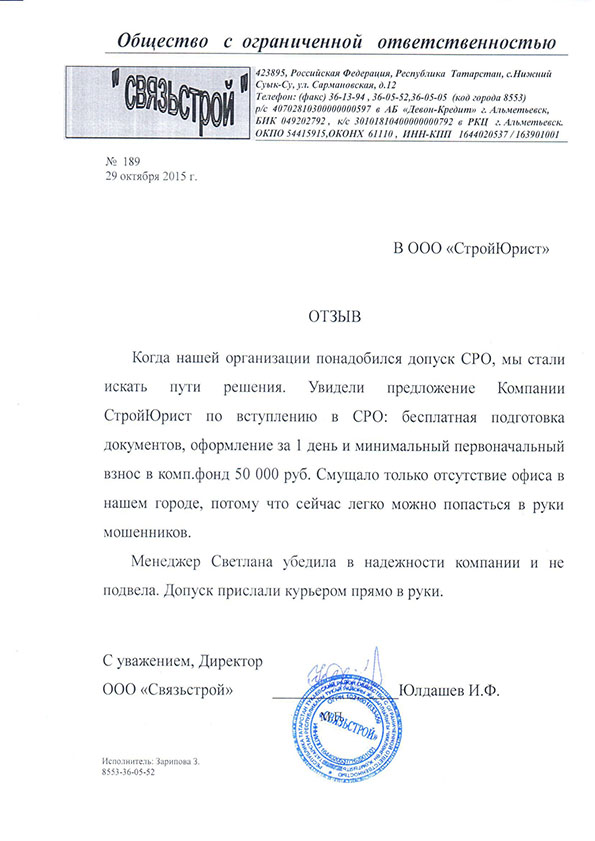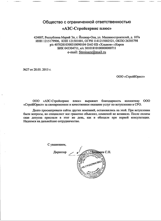 Отзывы клиентов "СтройЮрист" по вступлению в СРО в Элисте