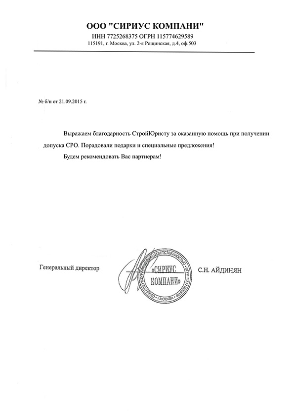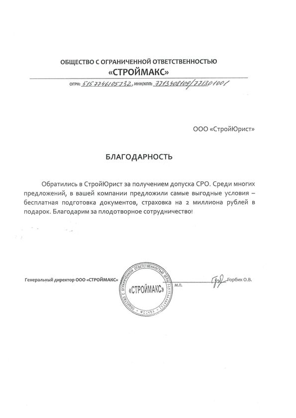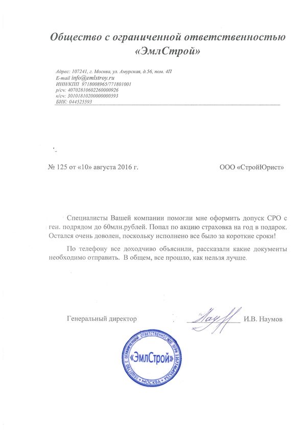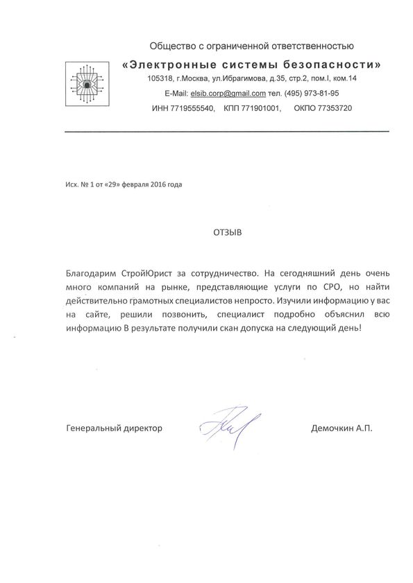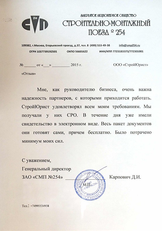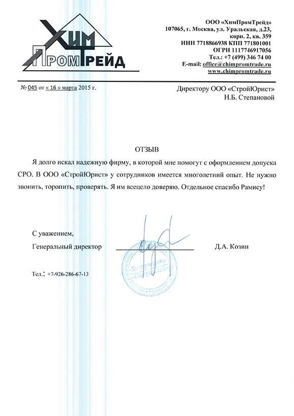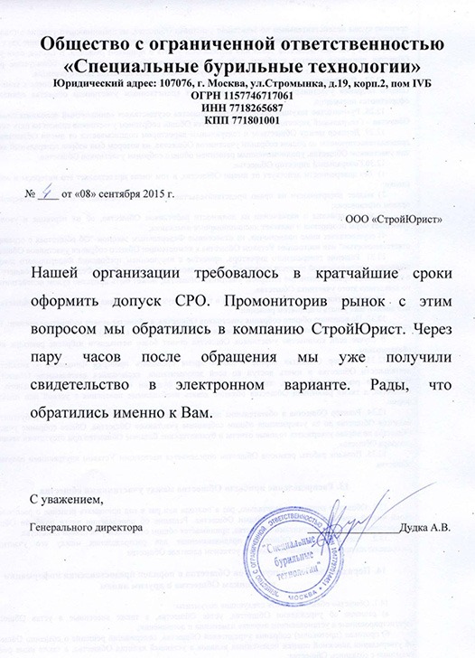 Отзывы клиентов "СтройЮрист" по вступлению в СРО в Элисте
