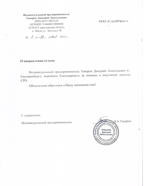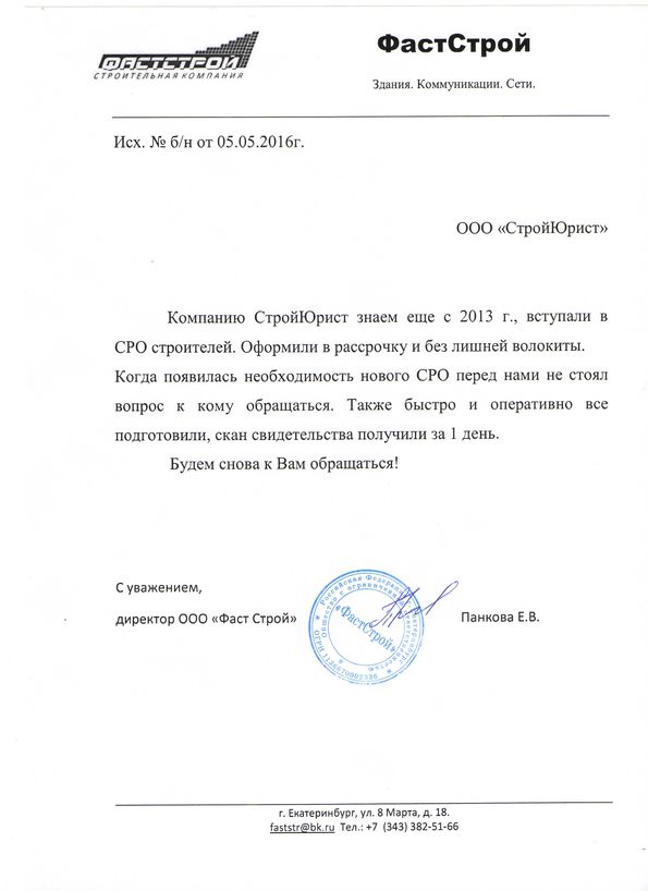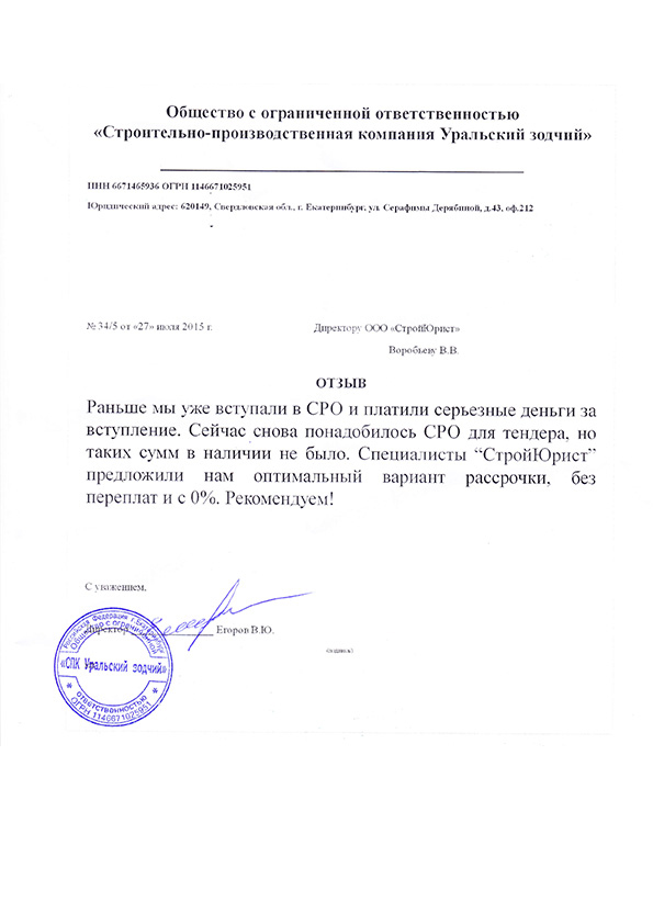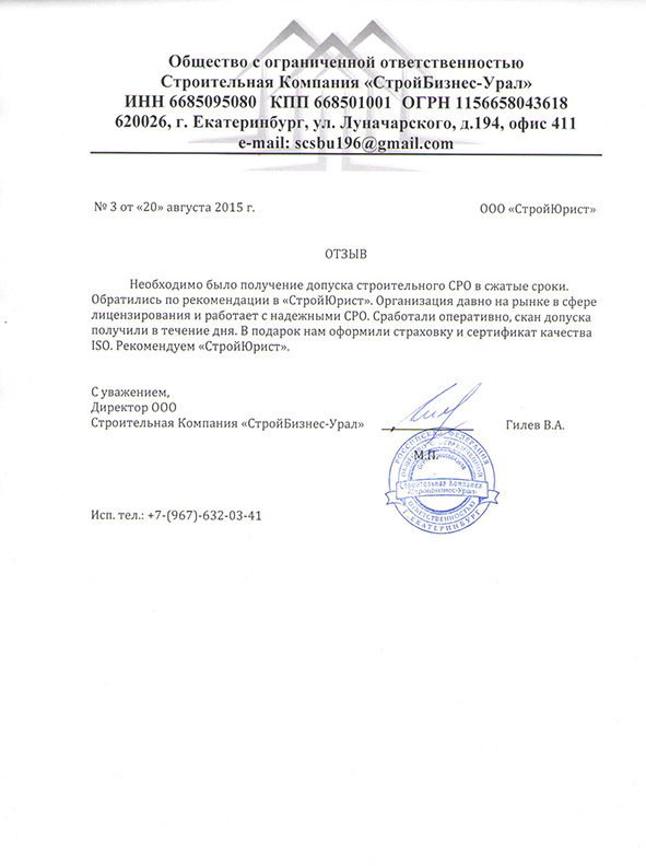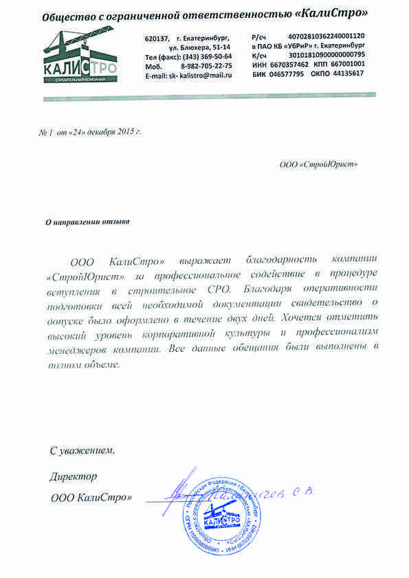 Отзывы клиентов "СтройЮрист" по вступлению в СРО в Элисте