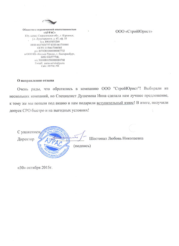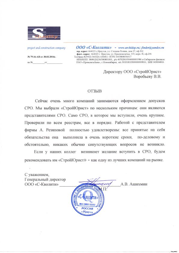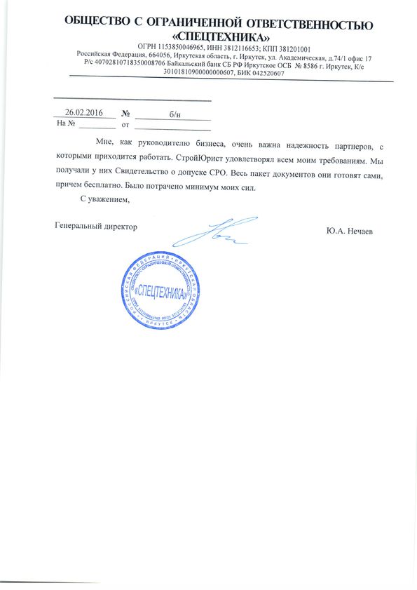 Отзывы клиентов "СтройЮрист" по вступлению в СРО в Элисте