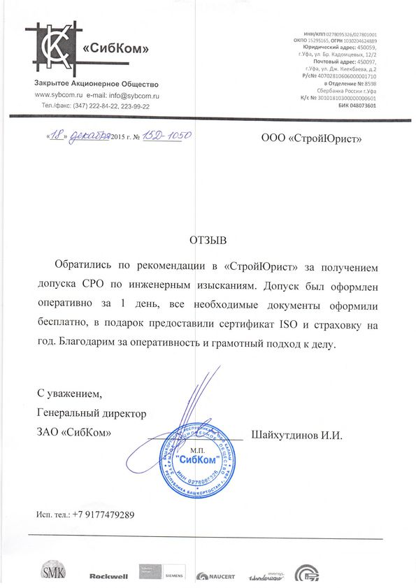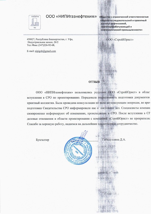 Отзывы клиентов "СтройЮрист" по вступлению в СРО в Элисте