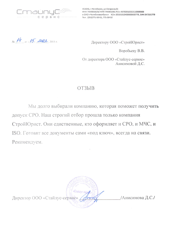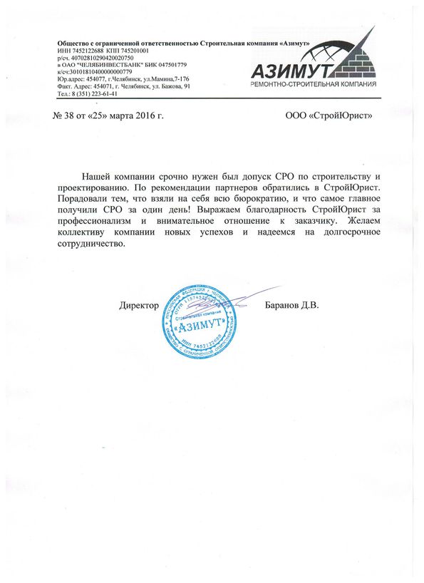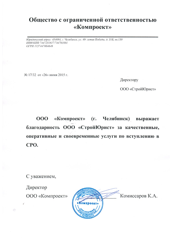 Отзывы клиентов "СтройЮрист" по вступлению в СРО в Элисте